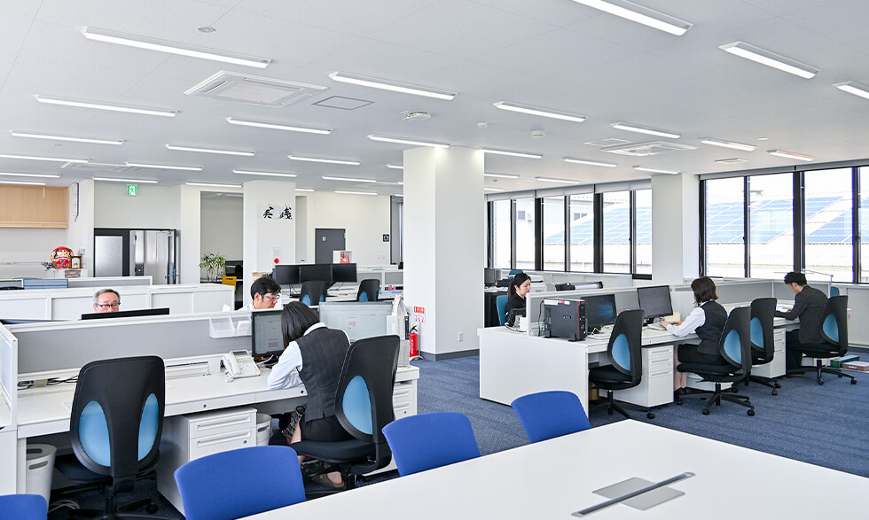 ホクブでは、変革期を迎えた今こそ人材が企業の成長を左右すると考え、働きやすい会社づくりに取り組んでいます。その一環として、令和7年にオフィスを全面リニューアルしました。明るく快適な空間への刷新により、モチベーションや仕事の質の向上を図り、企業としてのさらなる飛躍を目指してまいります。